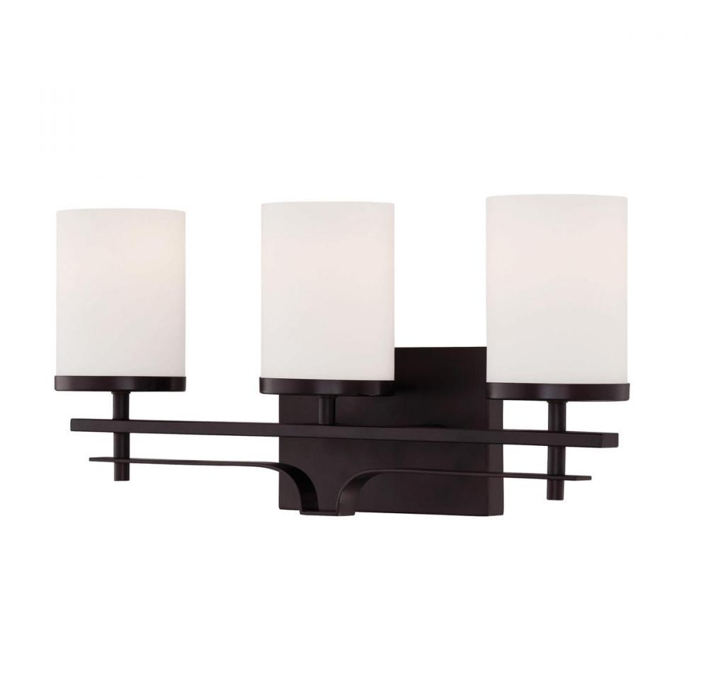 Good lighting is key to good home design. A great light fixture sets the mood, ensuring that everyone feels comfortable, and that’s exactly what the Colton does. It’s a sleek design made with Savoy House’s meticulous craftsmanship and high quality materials, creating a fixture with terrific performance and impeccable style. The graceful curved frame has streamlined detailing and an English bronze finish. Three 60W standard size bulbs sit within cylindrical shades of lovely white opal glass to create a soothing, flattering and inviting glow. This bath light is 20.5" wide and 9" high, making it an elegant and timeless style for your bathroom or powder room.