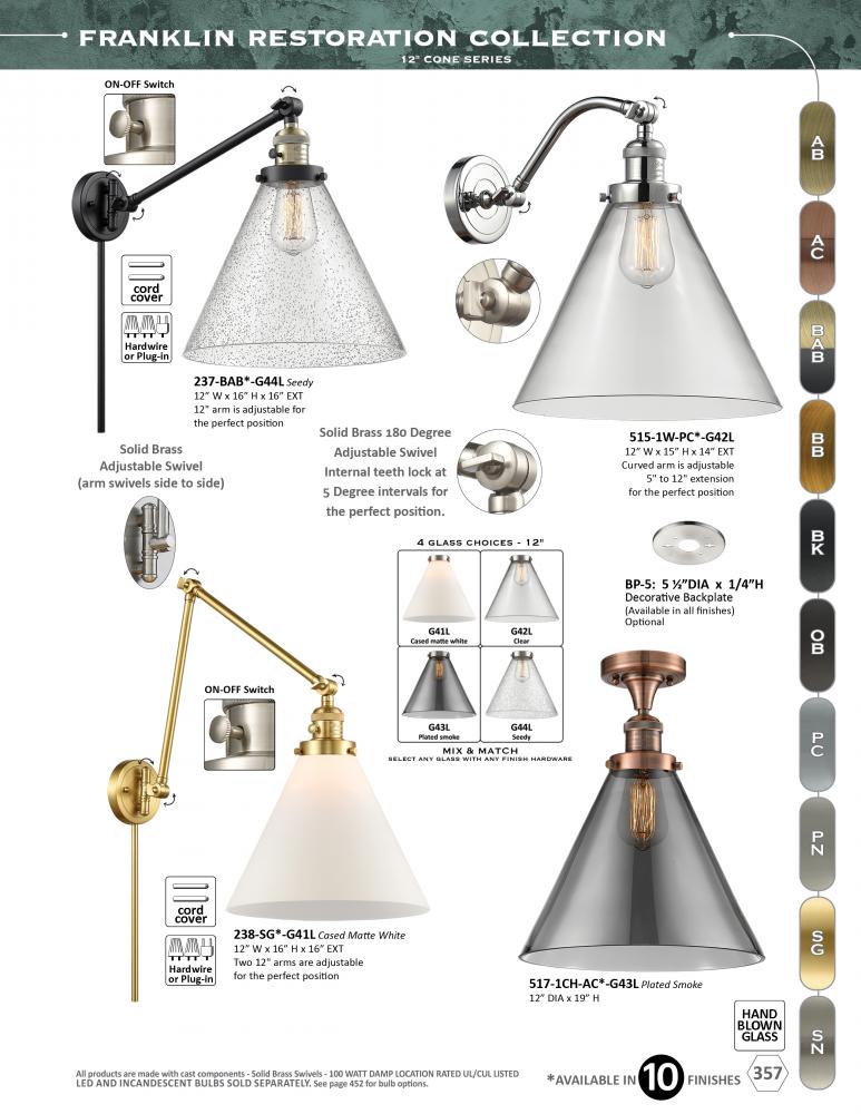 The Franklin Restoration collection is comprised of heavy cast components that give the fixture a heavy Industrial look and feel. We offer the fixture in 10 finishes with a Bare Bulb look or with over 100 possible metal and glass shade options that can cha