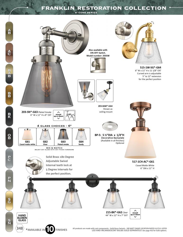 The Franklin Restoration collection is comprised of heavy cast components that give the fixture a heavy Industrial look and feel. We offer the fixture in 10 finishes with a Bare Bulb look or with over 100 possible metal and glass shade options that can cha