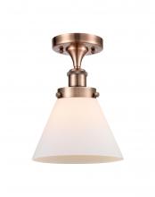 Cone - 1 Light - 8 inch - Brushed Satin Nickel - Matte White Shade - Semi-Flush Mount