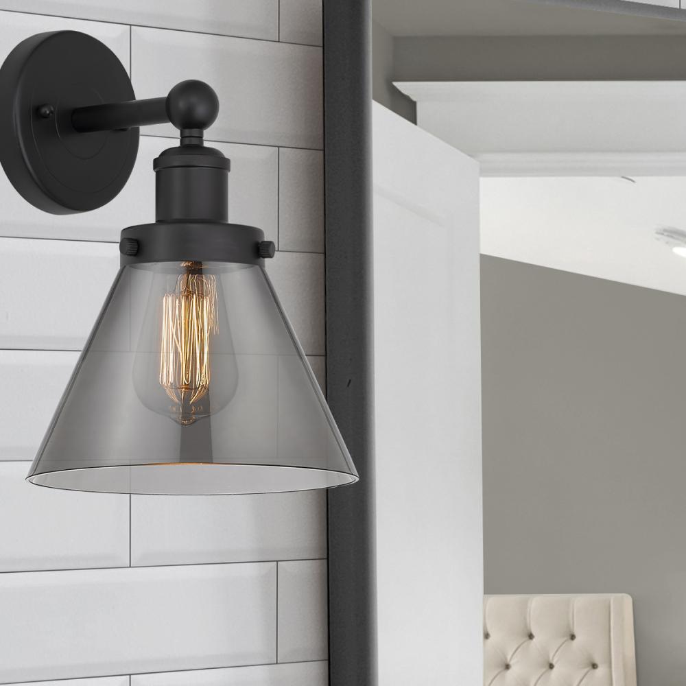 Cone - 1 Light - 8 inch - Matte Black - Light Smoke Shade - Sconce