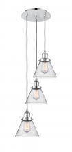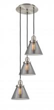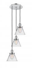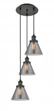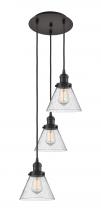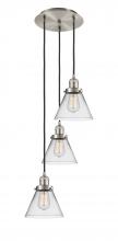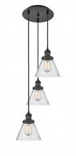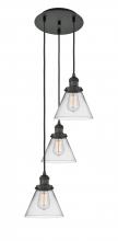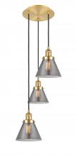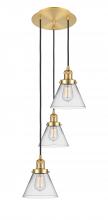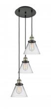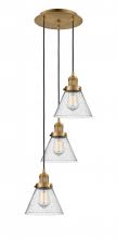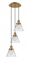 Cone - 3 Light - 14 inch - Antique Brass - Clear Shade - Cord hung - Multi Pendant
