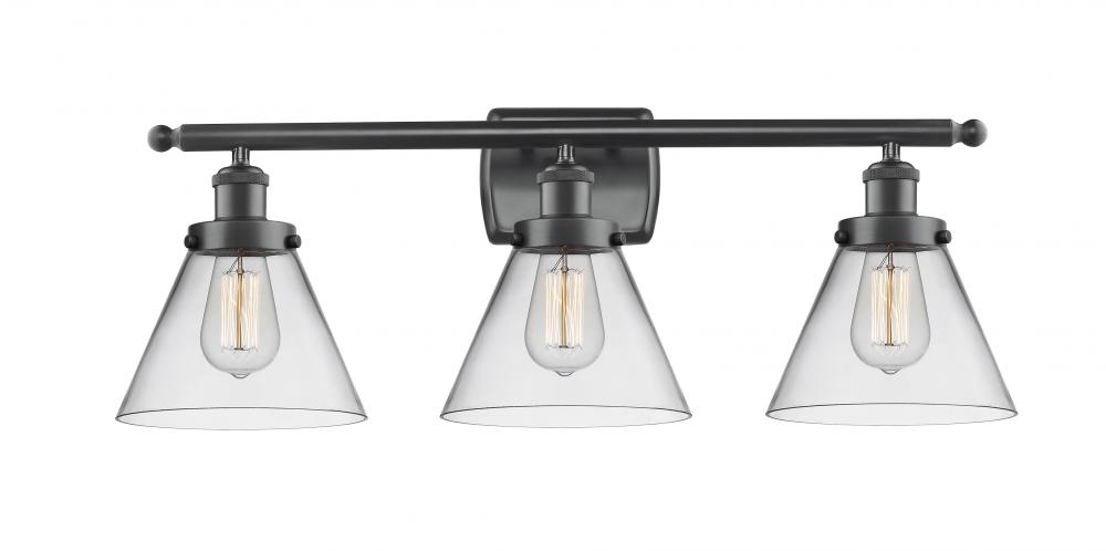 Cone - 3 Light - 28 inch - Matte Black - Clear Shade - Bath Vanity Light