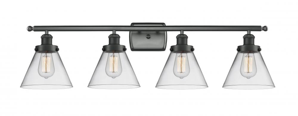 Cone - 4 Light - 38 inch - Matte Black - Clear Shade - Bath Vanity Light