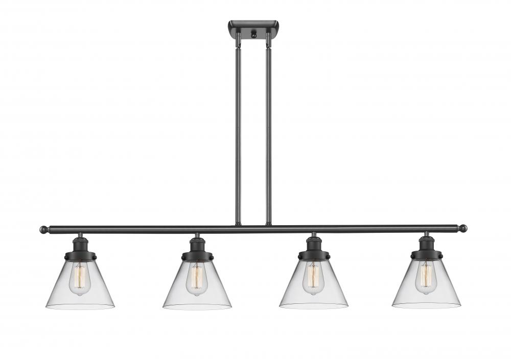 Cone - 4 Light - 48 inch - Matte Black - Clear Shade - Stem Hung - Island Light