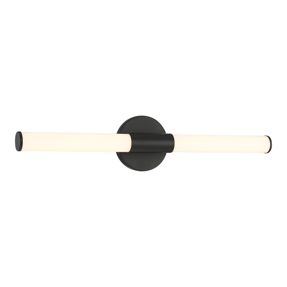 Brighten up your bathroom with the cool contemporary style of the Savoy House Connor LED bath vanity light! Get a bright and helpful glow from the integrated LED module, which offers 1800 lumens at a 3000K color temperature and a 90 CRI. The Black finish brings excellent versatility. Whether used solo or in groupings, this is a perfect choice for bath lighting. Connor is 5" in height, 24" in width and extends 2.7" from the wall. It is damp area rated and dimmable. Can be mounted horizontally or vertically. Connor is part of Lighting Assets, a collection of stylish and practical lighting solutions for every space.