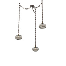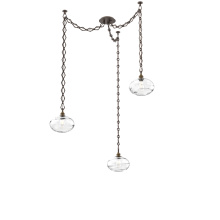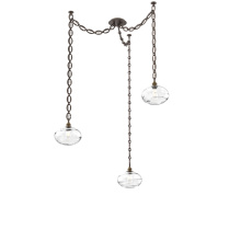 Featuring our popular artisan blown Coppa pendants, this versatile chandelier style enables customization of the placement and height of each pendant. A ribbon of molten crystal glass added during fabrication creates a magical dance of light and color when paired with clear or vintage bulbs.