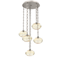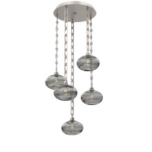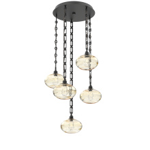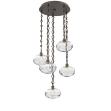 Handcrafted in North America by Hammerton artisans, the Coppa Round Multi-pendant Chandelier showcases 5 elegant Coppa pendants from hand-blown crystal glass and suspended from a round canopy by your choice of cloth-braided cord or artisan-forged chain. Each blown glass shade is expertly shaped to refract light in captivating ways, especially when paired with vintage-style bulbs. Suspension options include three vintage-inspired chain styles, all designed and crafted with exceptional attention to detail.