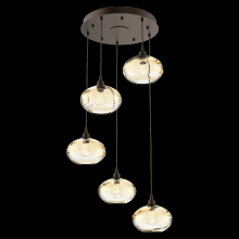 Coppa Round Multi - Port - Flat Bronze - Bronze Optic Blown Glass - Cloth Braided Cord - Incandescent E26 Socket
