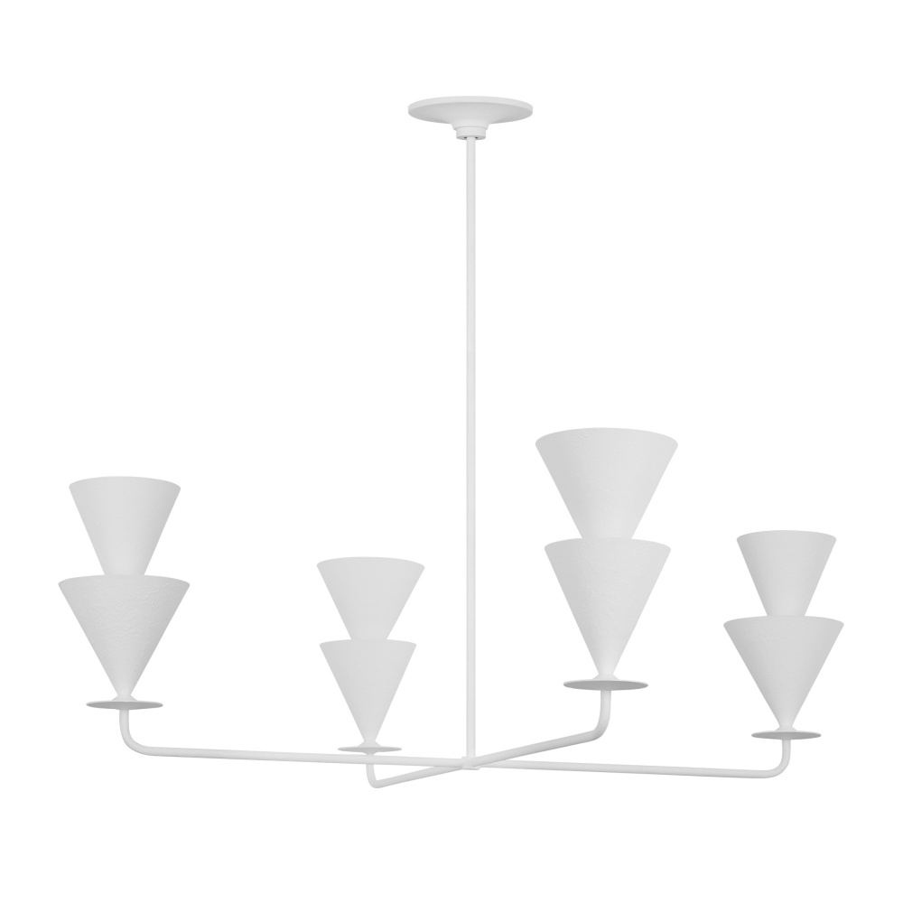 Designed by Christiane Lemieux, the Cornet four light single tier chandelier in cast plaster enhances the beauty of your home with ample light and style to match today's trends. Featuring inverted cone shades, Cornet reflects 1920's - 40's European design influences, everything from art deco through to Italian midcentury – even the classic torchieres by Serge Roche. This series features 4 chandeliers, a pendant 2 wall sconces and a floor lamp, all available in a Cast Plaster finish which gives a beautiful hand-crafted look.