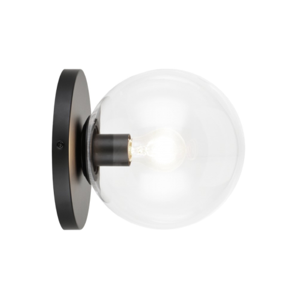 1LT 7.9"W "COSMO" WALL IRON+ALUMINUM-ABK-CLEAR GLASS