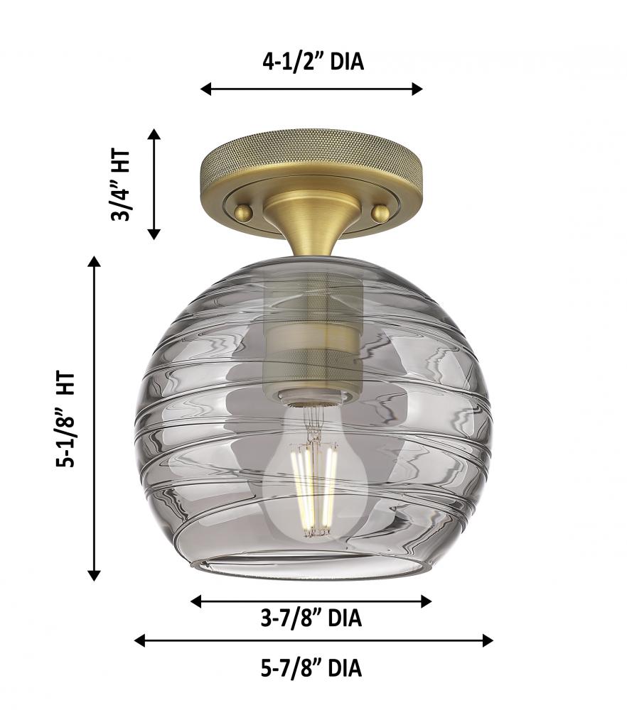 Crown Point - 1 Light - 6 inch - Brushed Brass - Deco Swirl Shade - Flush Mount