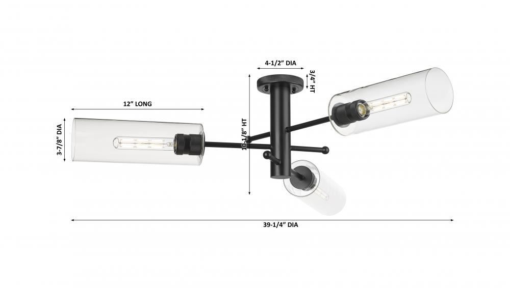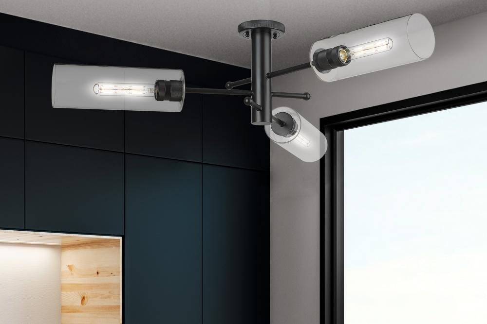 Crown Point - 3 Light - 34 inch - Matte Black - Clear Shade - Semi-Flush Mount