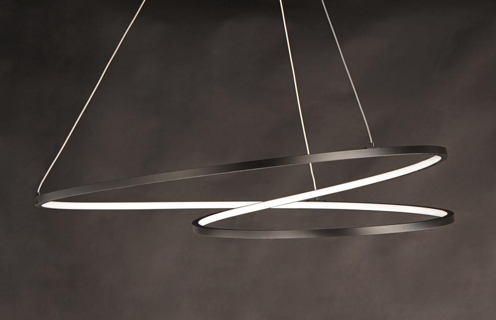 This playful design of a continuous channel spiraling from the canopy to create unique lighting sculptures. LED mounted inside the channel provides ample illumination with an indirect effect.