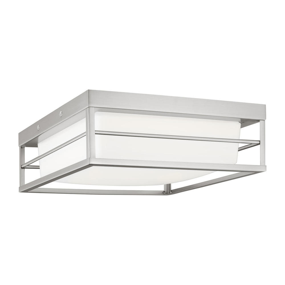 The Dearborn one light flush mount fixture in brushed nickel silver is a universal flush mount, with contemporary angles and open cage frame. Minimalism and elegant design, the simple geometric shape with the metal frame and LED lamping, suitable for kinds of decoration: modern, mid-century, rustic or industrial.