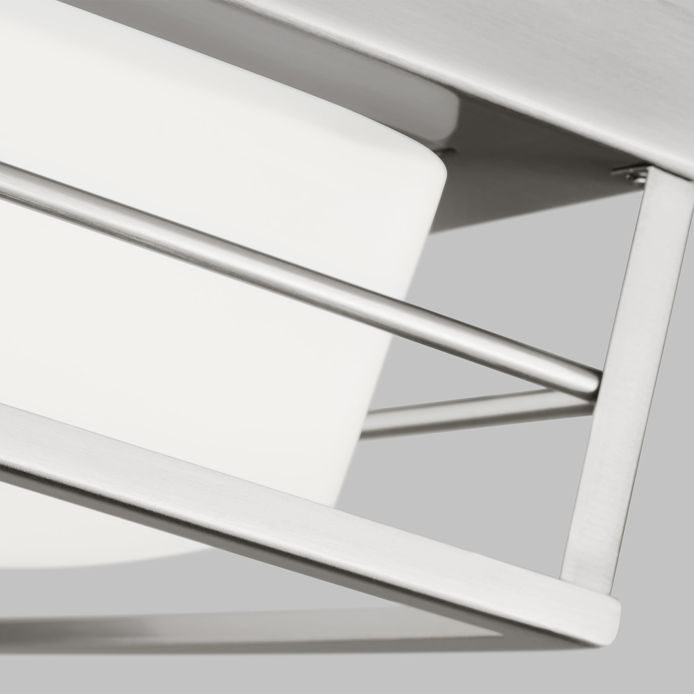 The Dearborn one light flush mount fixture in brushed nickel silver is a universal flush mount, with contemporary angles and open cage frame. Minimalism and elegant design, the simple geometric shape with the metal frame and LED lamping, suitable for kinds of decoration: modern, mid-century, rustic or industrial.