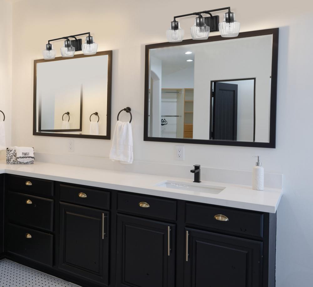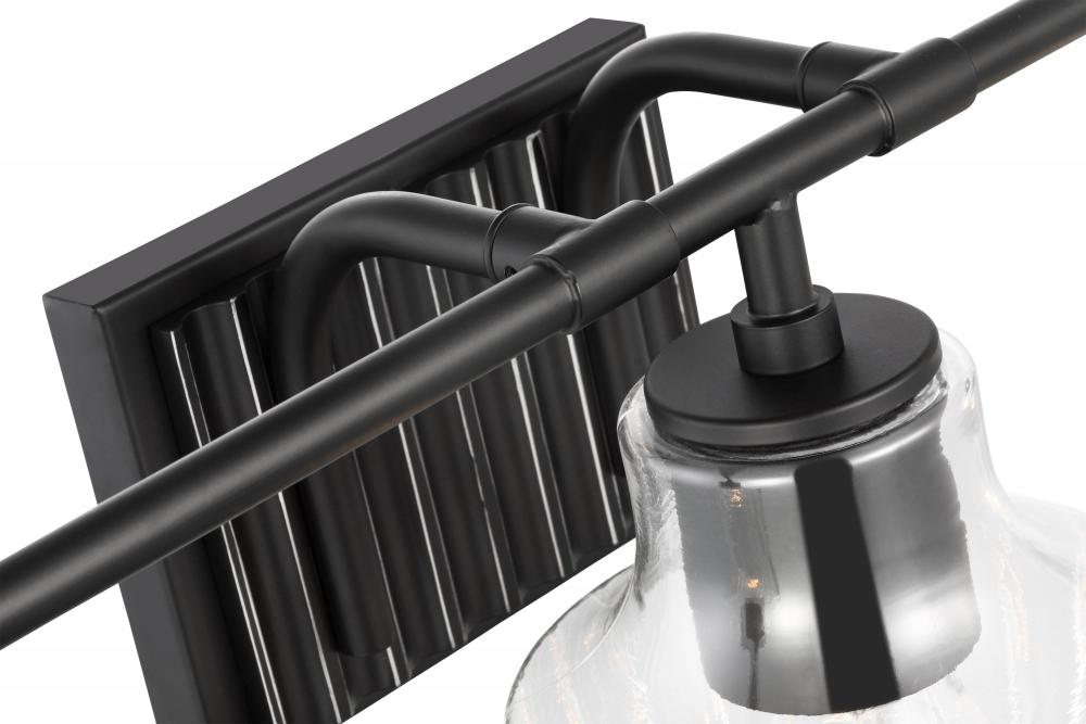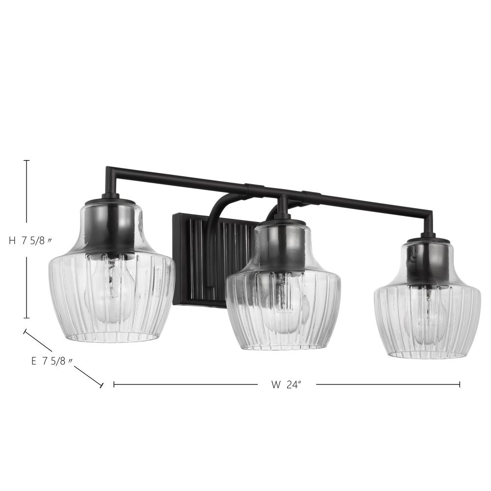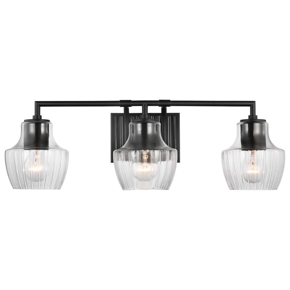 Destin; 3 Light Vanity; Medium Base; 60 Watt; Black And Silver Accent Finish; Clear Ribbed Glass