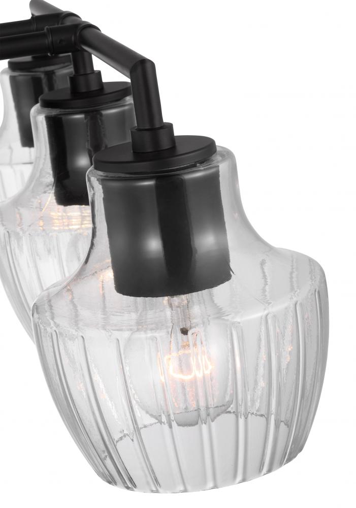 A fine balance is the Destin 60-7703 three light vanity's strongest asset, the stylish glass and lovely details set it apart from traditional lighting. The clear glass curves over the bulbs, subtly showcasing the light through ribbed detailing. Mimicki