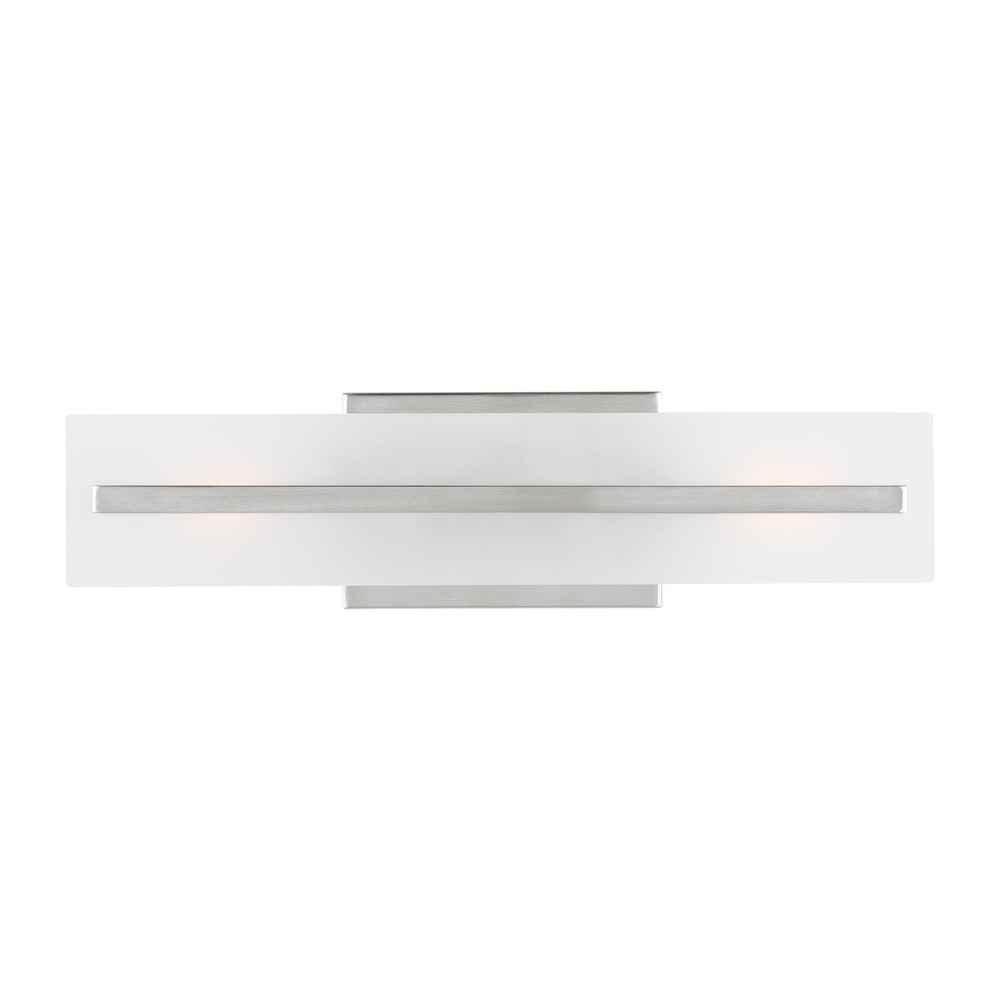 The Dex two light vanity fixture in brushed nickel silver is a contemporary design with three finishes and white acrylic diffuser creating a crisp look and bright clean ambiance. With the clean lines and classic styling, the Dex vanity series is versatile enough to be used in any transitional setting. Dex is an ENERGY STARĀ® qualified.