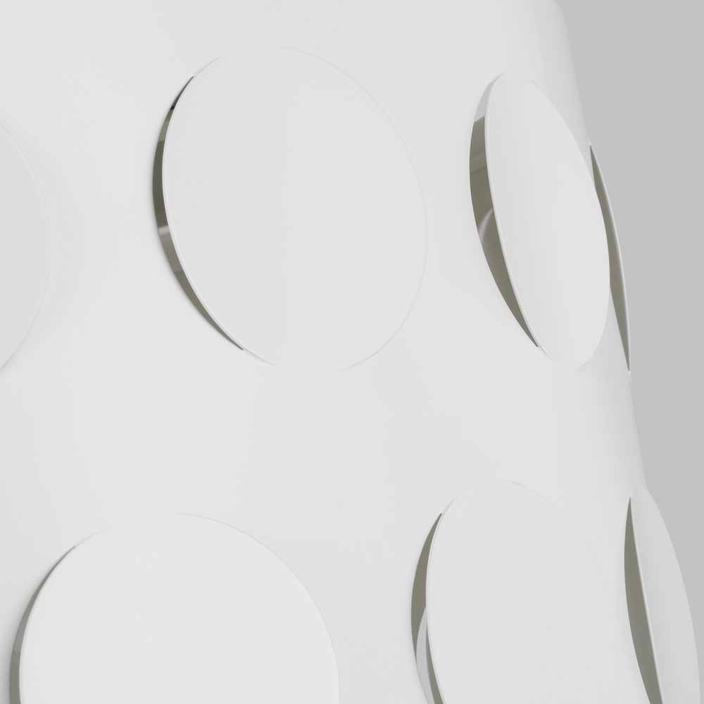 Dots are iconic to the kate spade brand—a simple and playful graphic motif. Dottie takes an iconic kate spade dot motif and cuts it into metal—creating a playful ambient light effect. A classic metal drum shade with an extra twist of perforated pattern. A matte white steel shade with an etched glass diffuser creates a gentle muted glow. Ideal for any hallway, foyer, bedroom, bathroom, or wherever overhead illumination is needed in transitional settings.