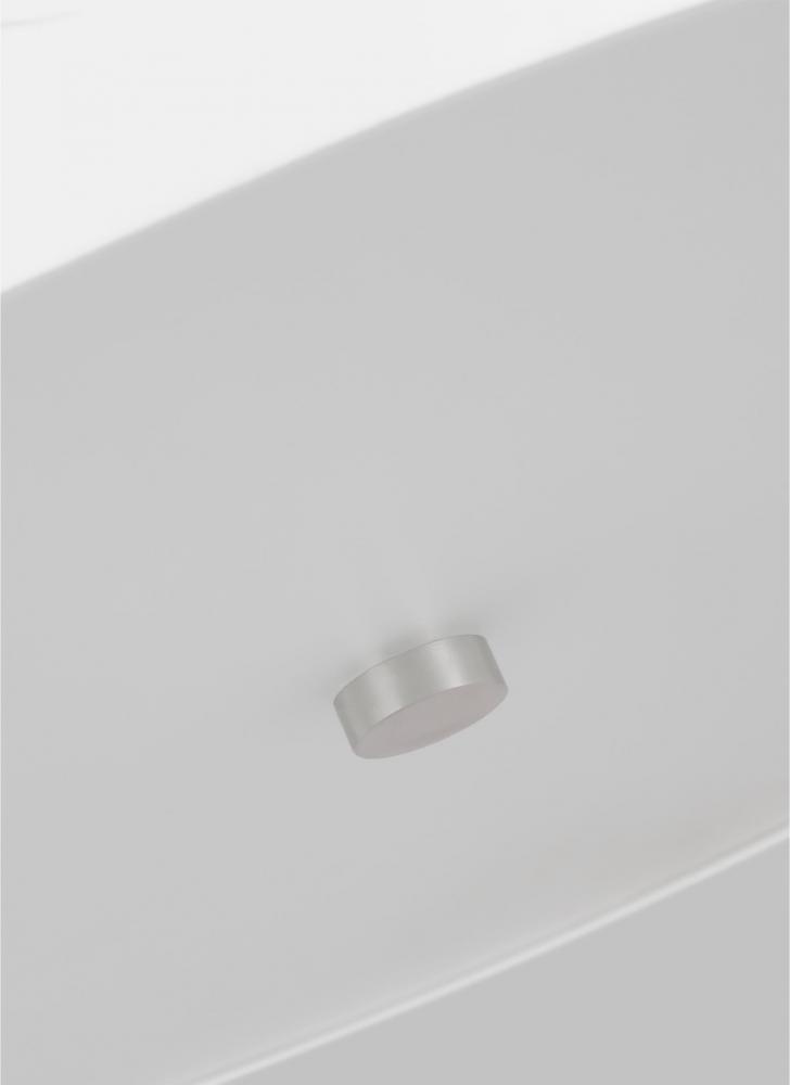 A cheerful, modern take on the classic flush mount, this fixture is crafted of steel and a matte white motif design with polished nickel accents.