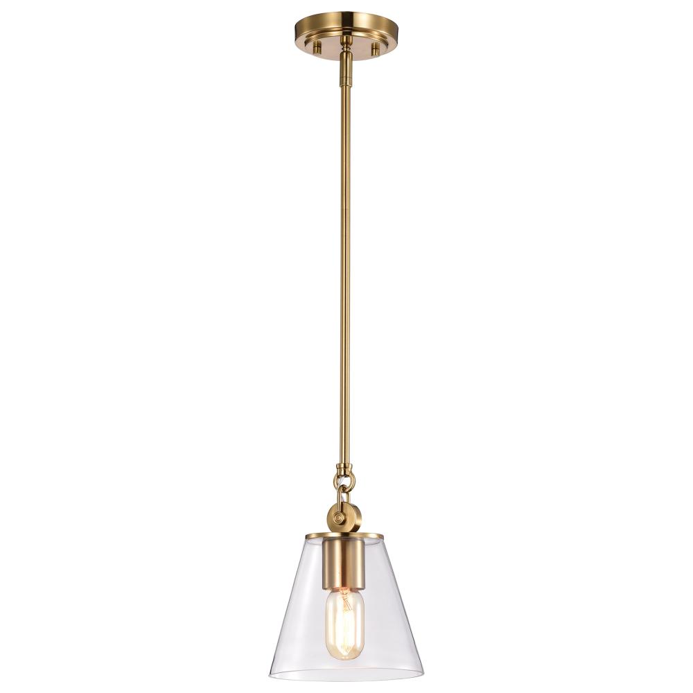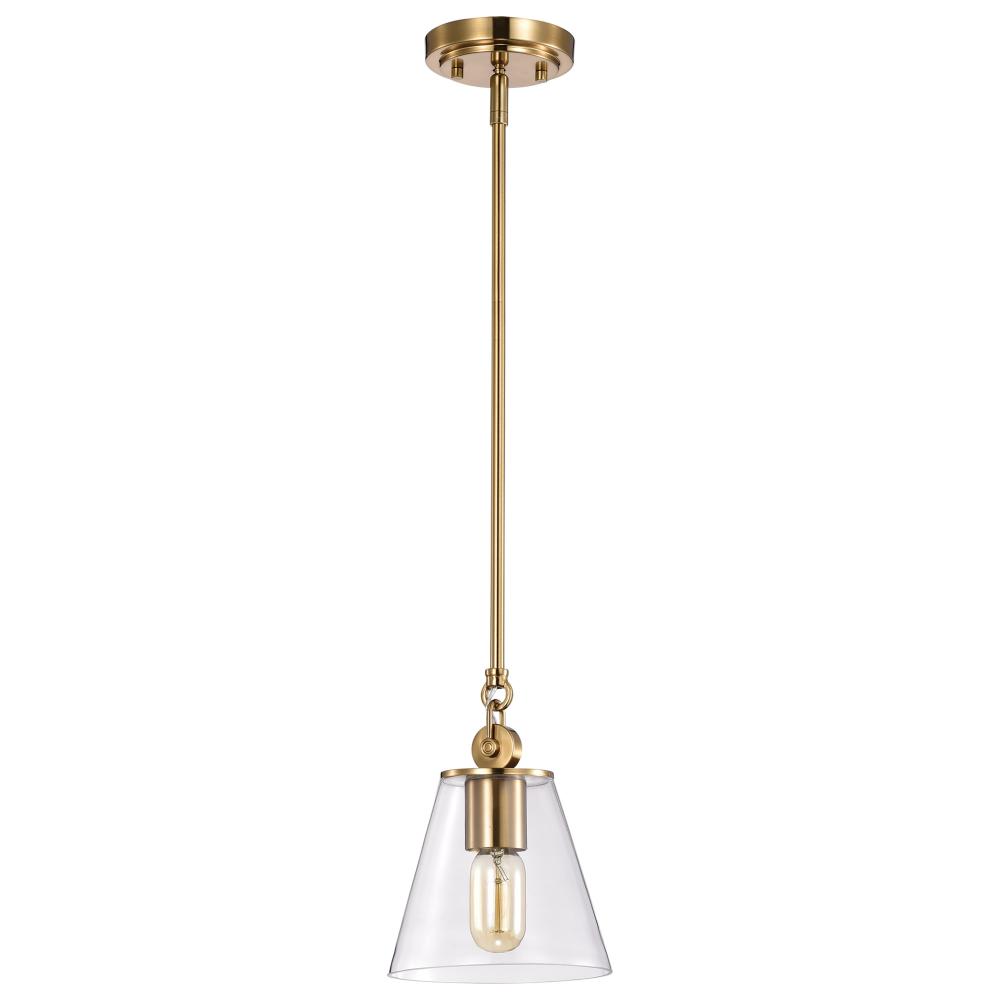 With subtle detailing, the Dover 60-7410 pendant is graceful yet unassuming. The simple clear glass shade features trim finished in vintage brass to match the fixture's body. Place a trio of them over the kitchen island for added light or over nightsta