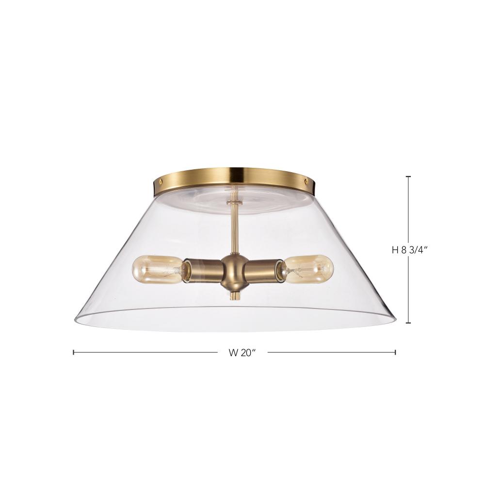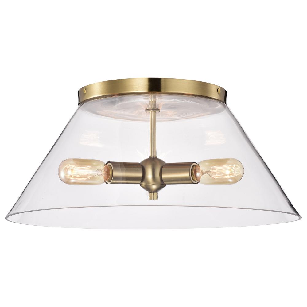 Dover; 3 Light; Large Flush Mount; Vintage Brass with Clear Glass