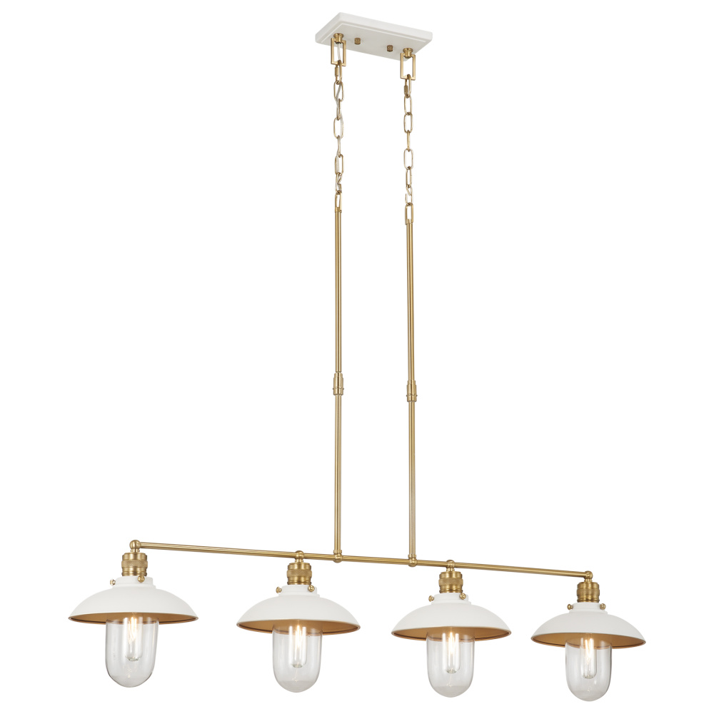 4 Light Island in White and Soft Brass Finish with Clear Glass