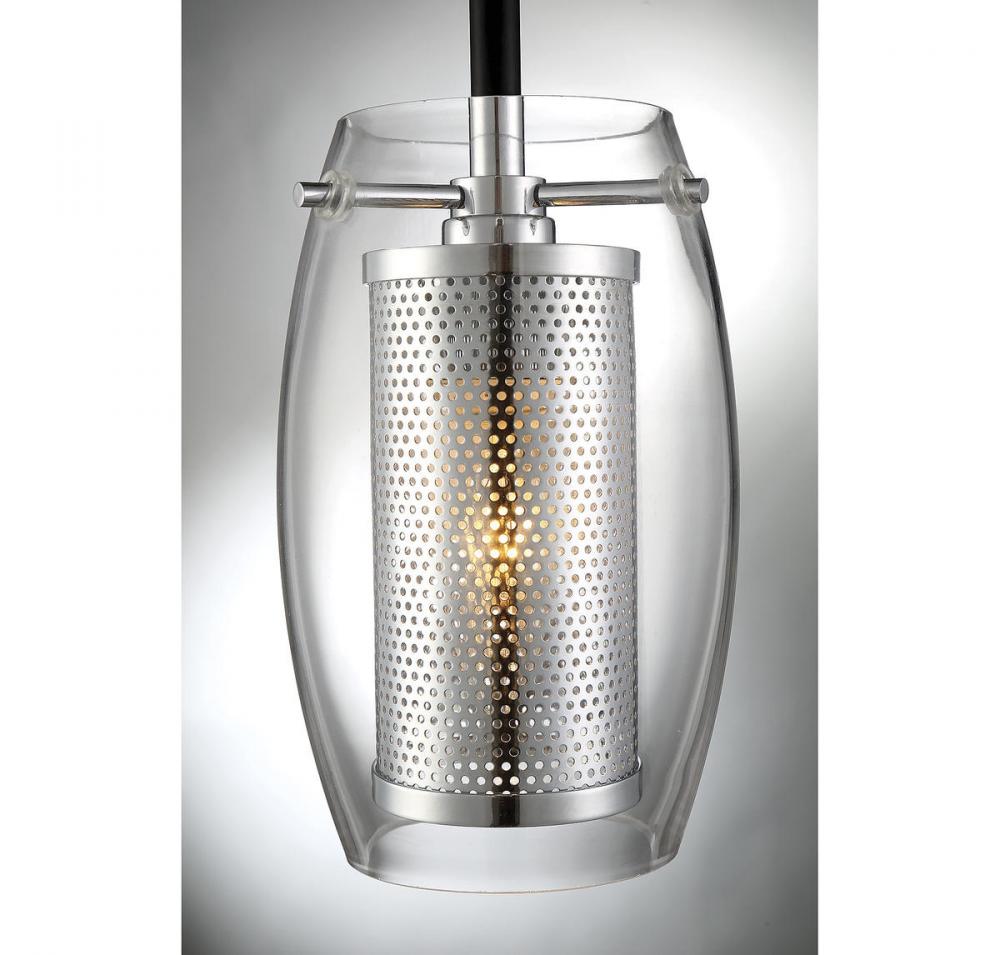 Dunbar 1-Light Pendant in Matte Black with Polished Chrome Accents