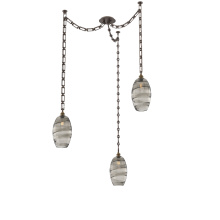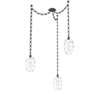 Featuring our popular artisan blown Ellisse pendants, this versatile chandelier style enables customization of the placement and height of each pendant. A ribbon of molten crystal glass added during fabrication creates a magical dance of light and color when paired with clear or vintage bulbs.
