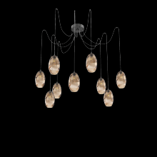 Ellisse Round 9pc Swag Multi - Pendant - Metallic Beige Silver - Amber Optic Blown Glass - Cloth Braided Cord - Incandescent E26 Socket