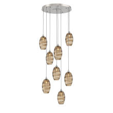 Ellisse Round Multi-Pendant-08-Burnished Bronze-Amber Optic Blown Glass-Cloth Braided Cord-E26