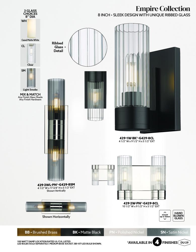Empire is a showstopper and presents sophisticated style through subtle design. This exquisite line of fixtures features refined fluted pillar glass shades set in a delicately detailed metal frame.