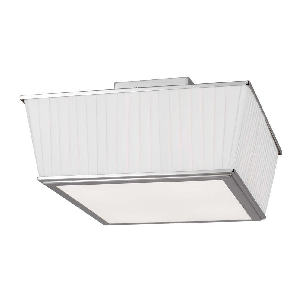 Two unique finishes lend a sense of glamour to this timeless design. White pleated fabric shade complete the look, adding a clean contrast to the design.