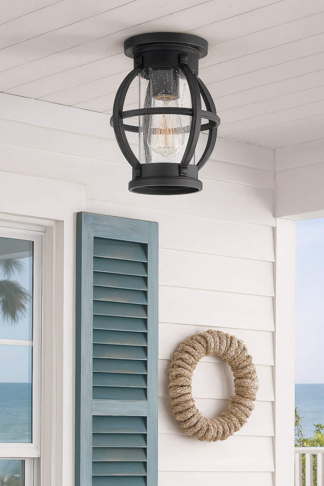Inspired by the traditional onion-style lantern, Chatham boasts a flair of nautical charm. Featuring a refined top scroll arm for a more casual and transitional style, it encompasses a gleaming, nautical seedy glass.Chatham is designed to withstand even the harshest elements. It is available in a Museum Black finish that is resistant to rust and corrosion with a 5-year warranty.