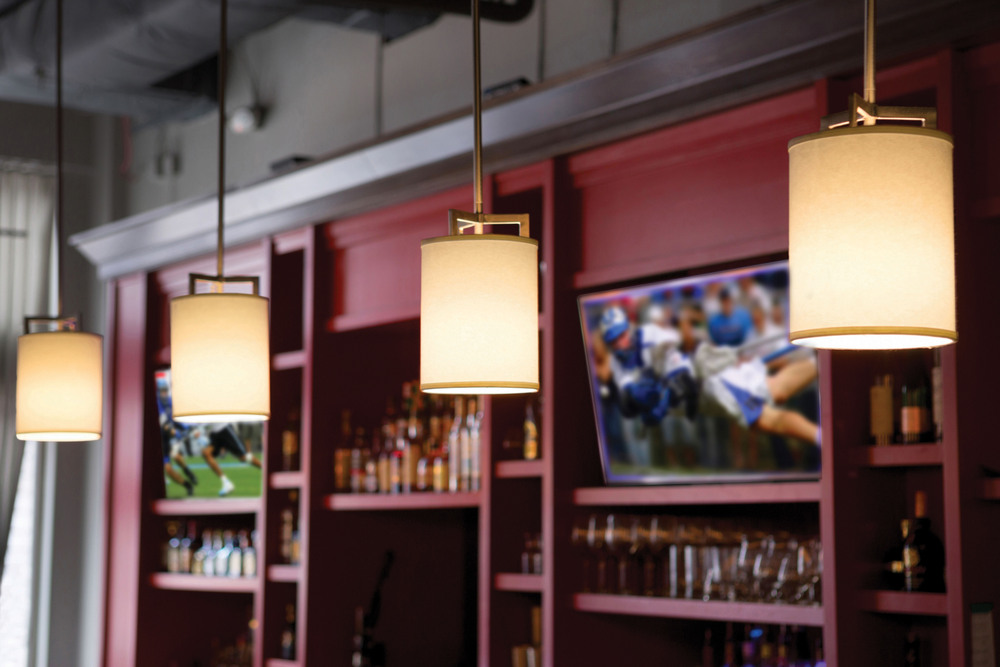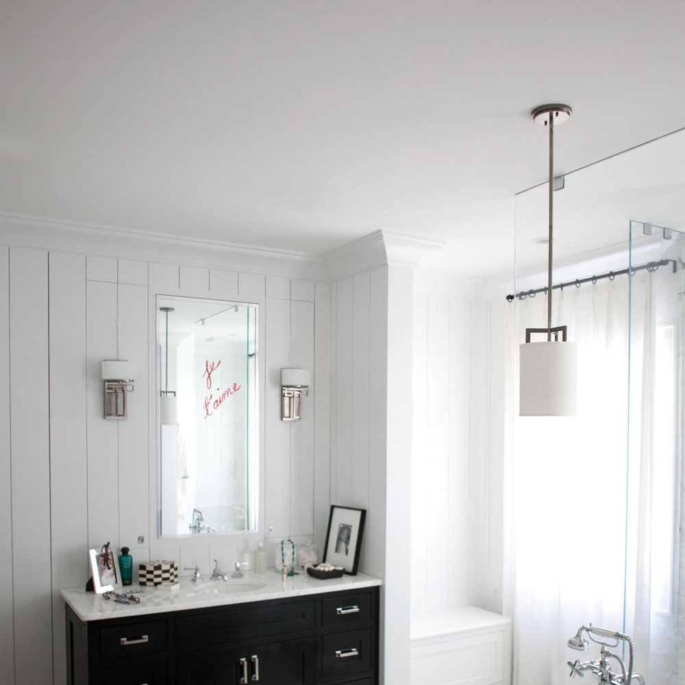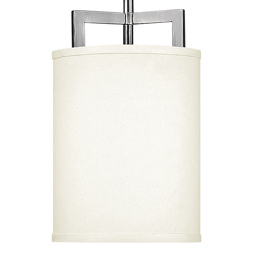 Hampton is a modern transitional design, offering the ultimate in urban sophistication. The minimal, rectangular frame is softened by a contemporary off-white linen drum shade.