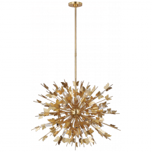 Butterfly motifs come to life with the Farfalle by Julie Neill. The backlit butterflies, available in gold or silver, gather energetically across chandeliers, semi-flush mounts, and sconces. These whimsical fixtures add charm to living rooms, dining rooms, bedrooms, entryways, and kitchens.