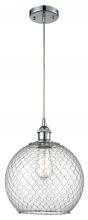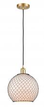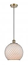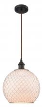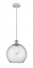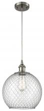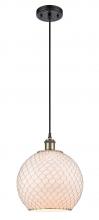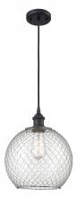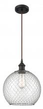 Farmhouse Chicken Wire - 1 Light - 10 inch - Oil Rubbed Bronze - Clear Glass with Black Wire Shade - Cord hung - Mini Pendant