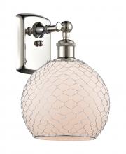 Farmhouse Chicken Wire - 1 Light - 8 inch - Matte Black - White Glass with Black Wire Shade - Sconce