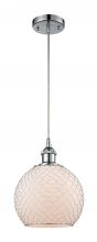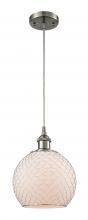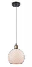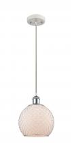 Farmhouse Chicken Wire - 1 Light - 8 inch - Oil Rubbed Bronze - White Glass with Nickel Wire Shade - Cord hung - Mini Pendant
