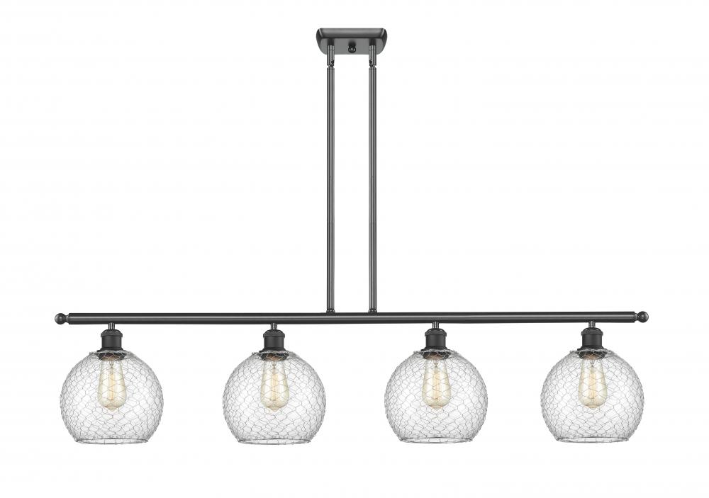 Farmhouse Chicken Wire - 4 Light 48" - Stem Hung Island Light - Incandescent Bulb - Matte Black Finish - Clear Glass with Nickel Wire Shade