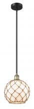 Farmhouse Rope - 1 Light - 10 inch - Antique Brass - White Glass with Brown Rope Shade - Stem hung - Mini Pendant