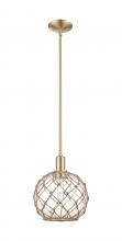 Farmhouse Rope - 1 Light - 10 inch - Antique Brass - Cord hung - Mini Pendant
