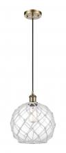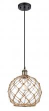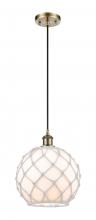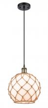Farmhouse Rope - 1 Light - 10 inch - Matte Black - White Glass with Brown Rope Shade - Cord hung - Mini Pendant