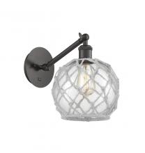 Farmhouse Rope - 1 Light - 8 inch - Antique Brass - White Glass with Brown Rope Shade - Adjustable Sconce