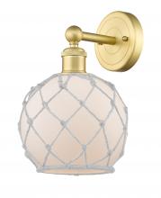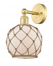 Farmhouse Rope - 1 Light - 8 inch - Antique Brass - White Glass with Brown Rope shade - Sconce