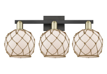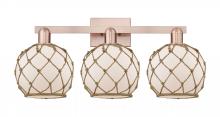 Farmhouse Rope - 3 Light - 27 inch - Antique Brass - White Glass with Brown Rope shade - Bath Vanity Light