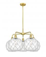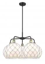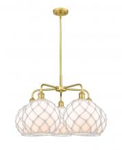 Farmhouse Rope - 5 Light - 29 inch - Antique Brass - Matte White shade - Stem hung - Chandelier