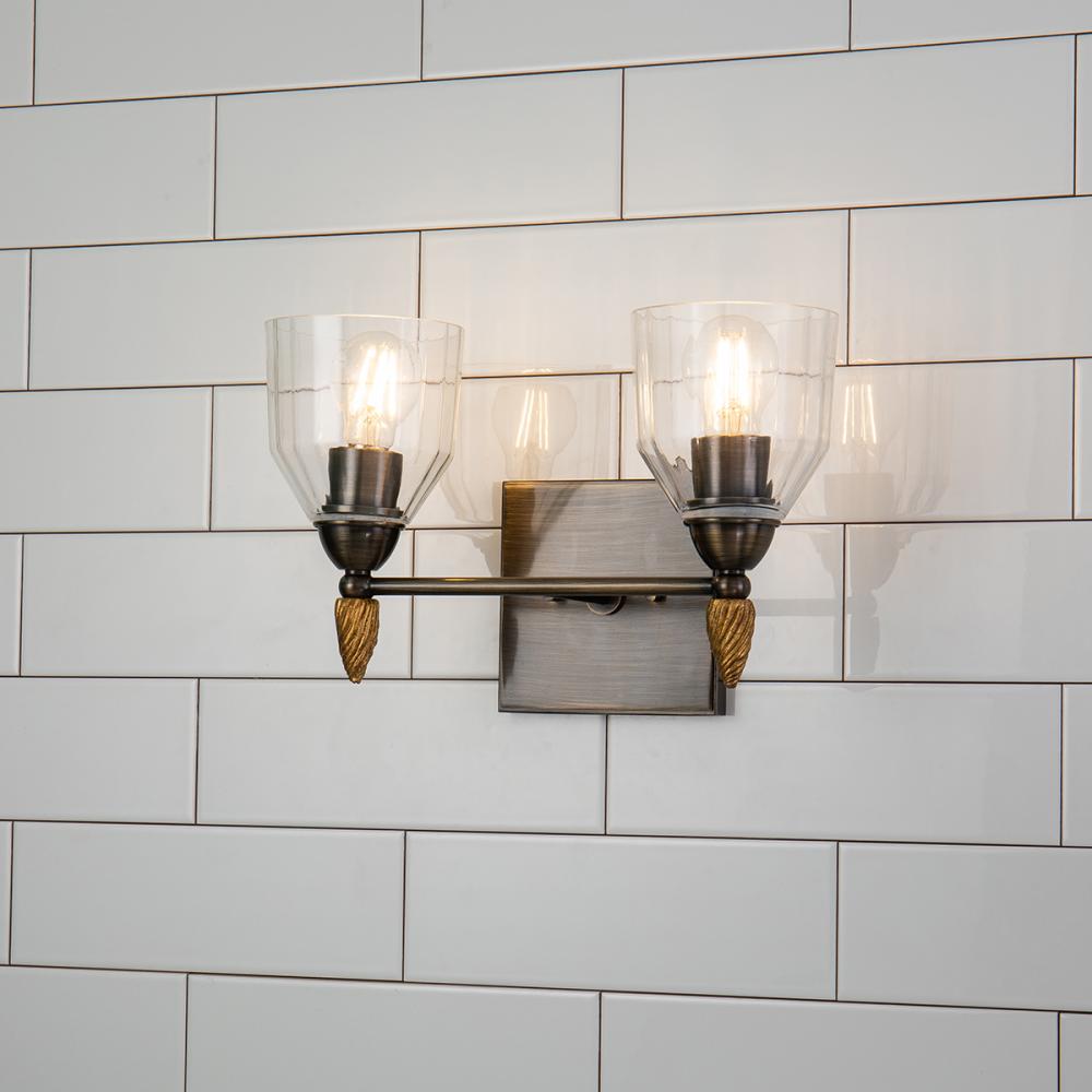 Felice 2 Light Vanity in Dark Bronze With Gold Accents