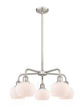 Fenton - 5 Light - 25 inch - Antique Brass - Matte White Shade - Chandelier